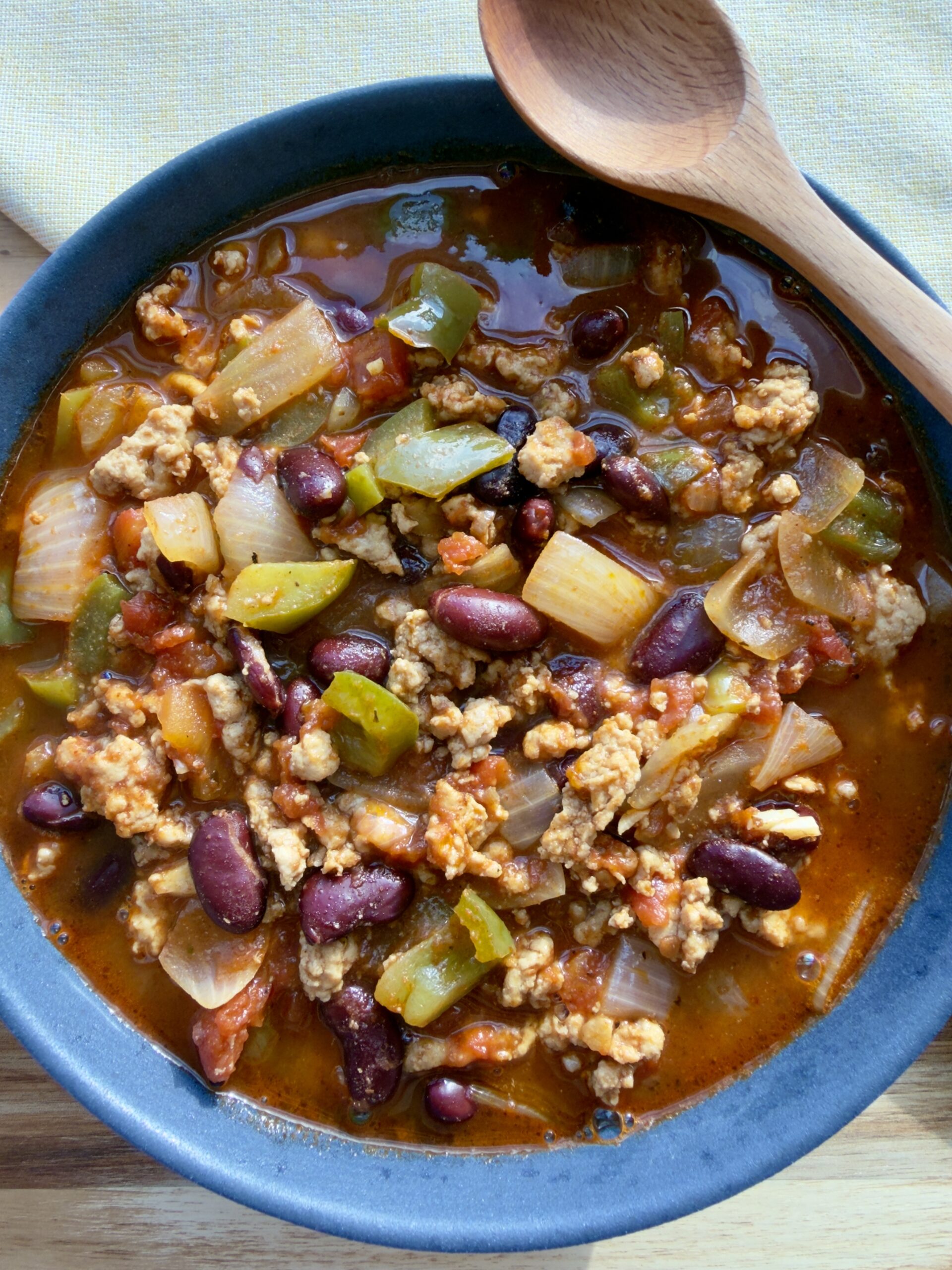 A thick, cozy chicken chili simmered with kidney beans, tomato, and warm spices—high in protein, satisfying, and perfect for meal prep.